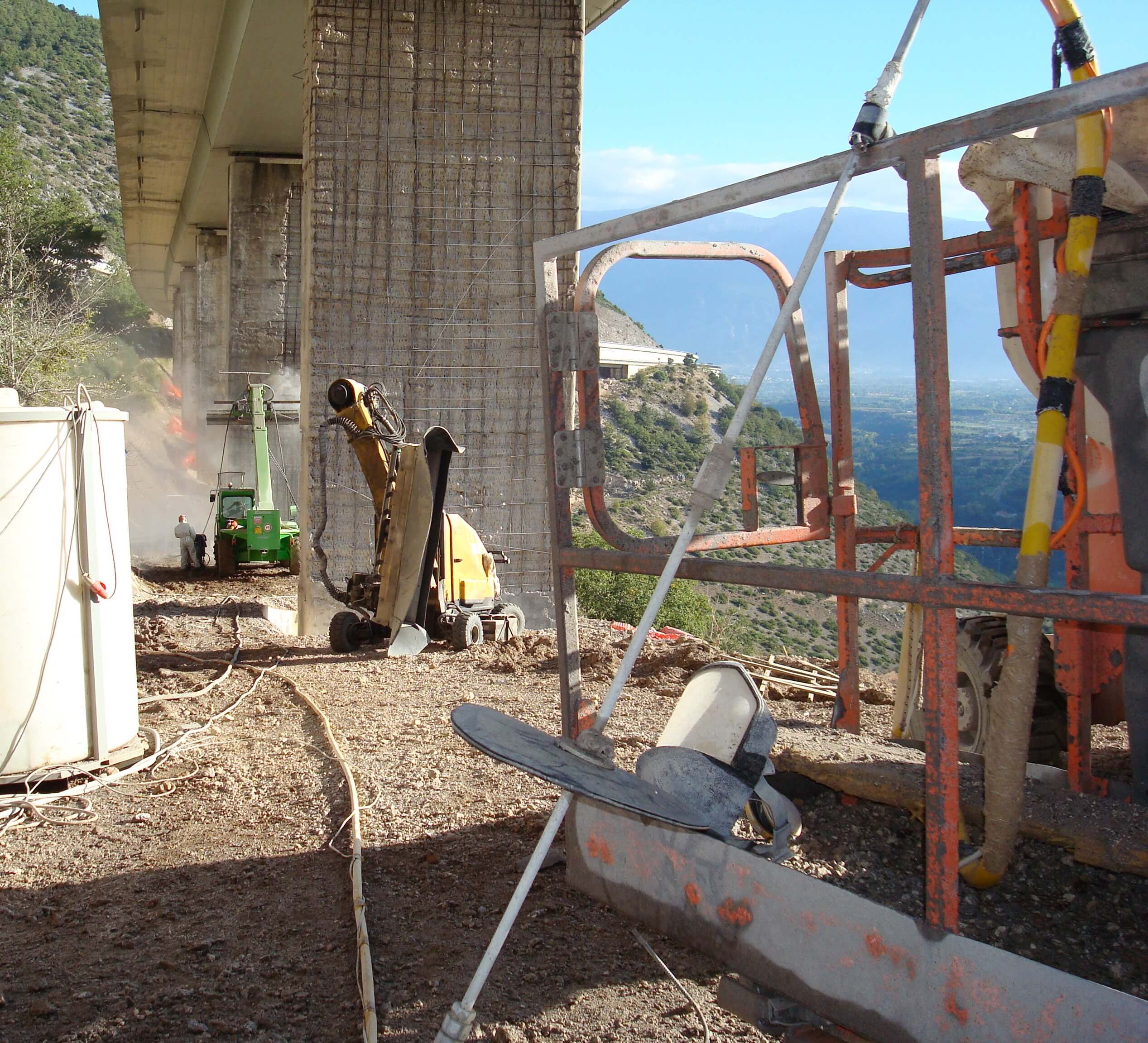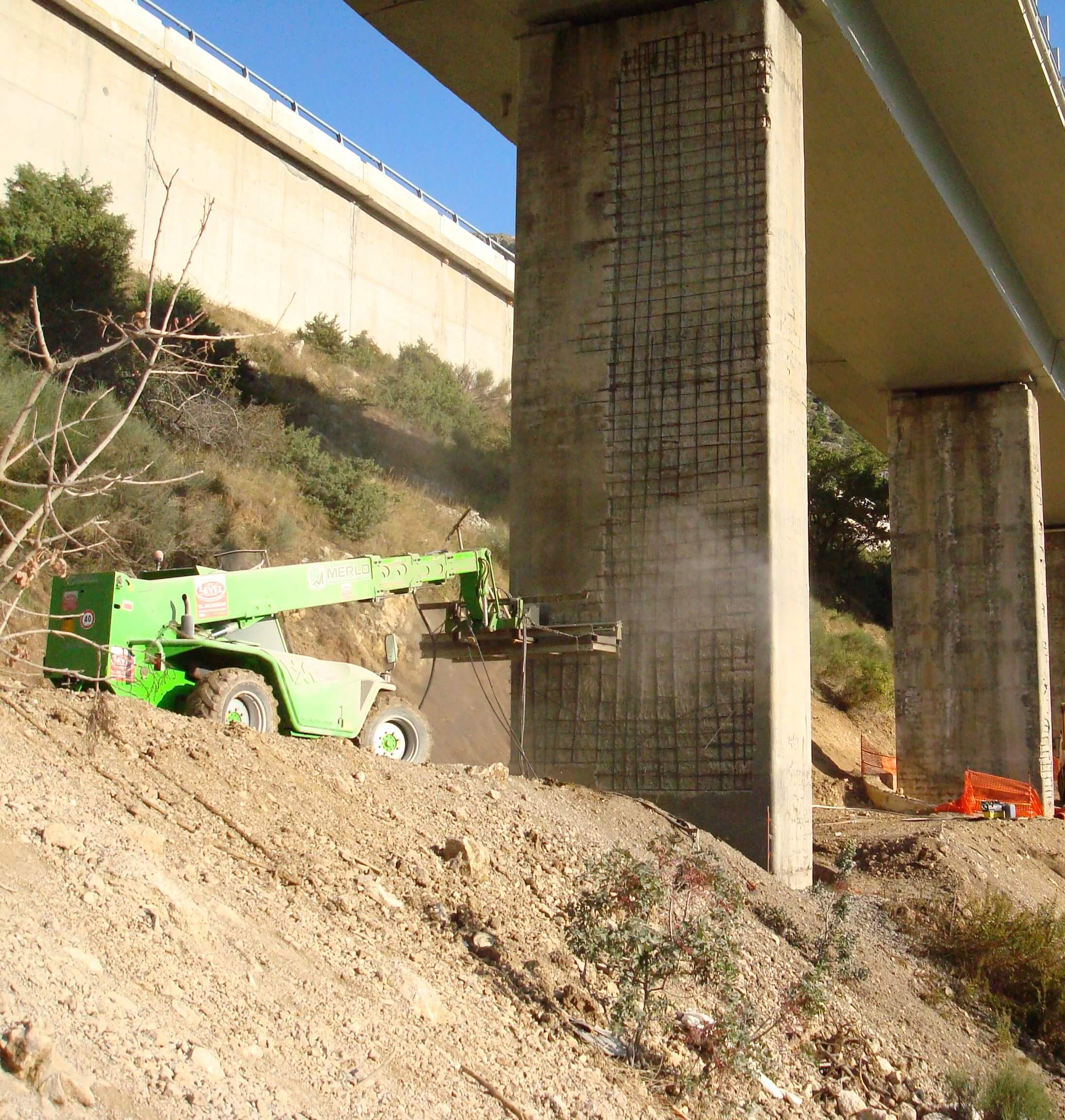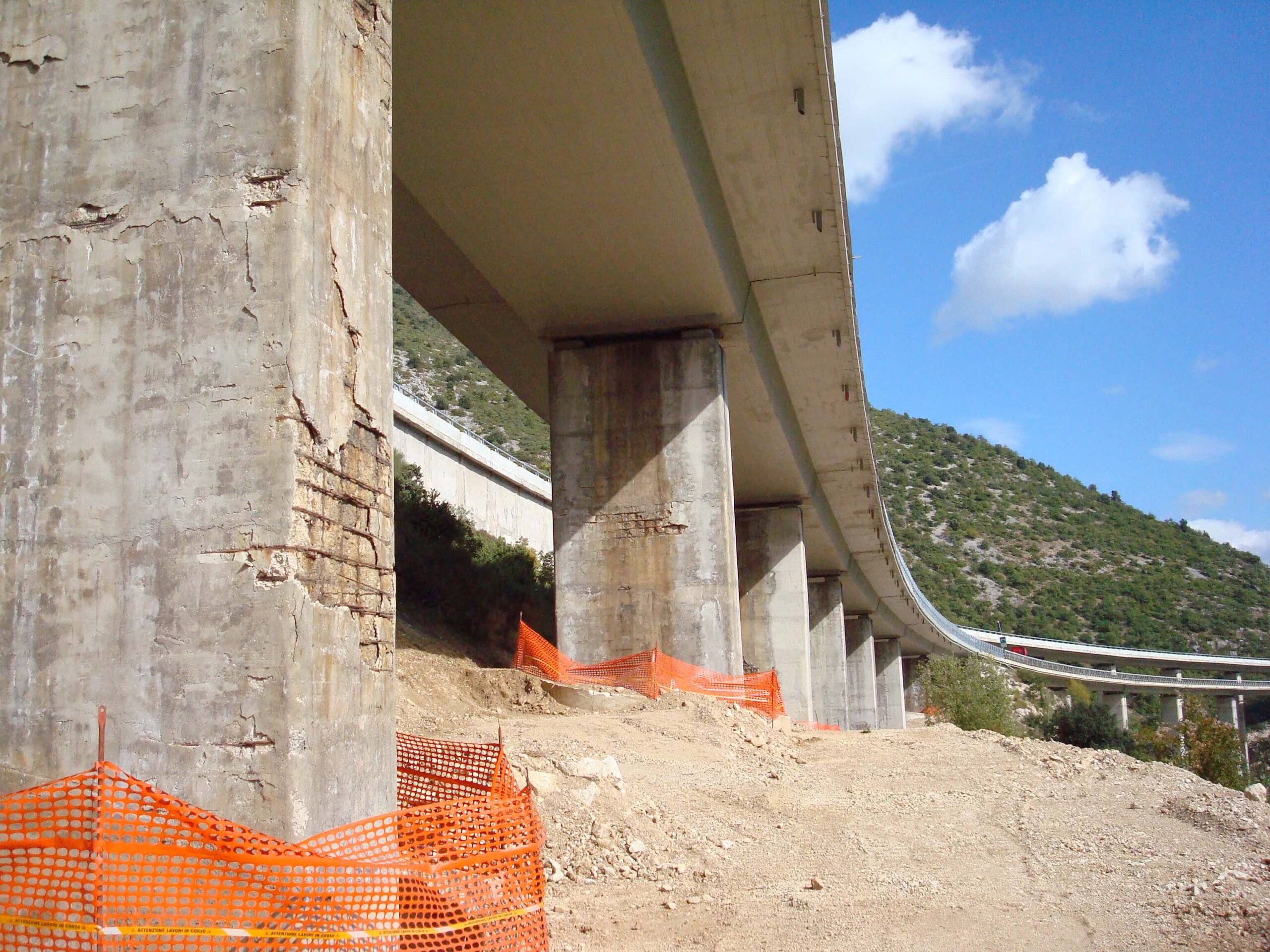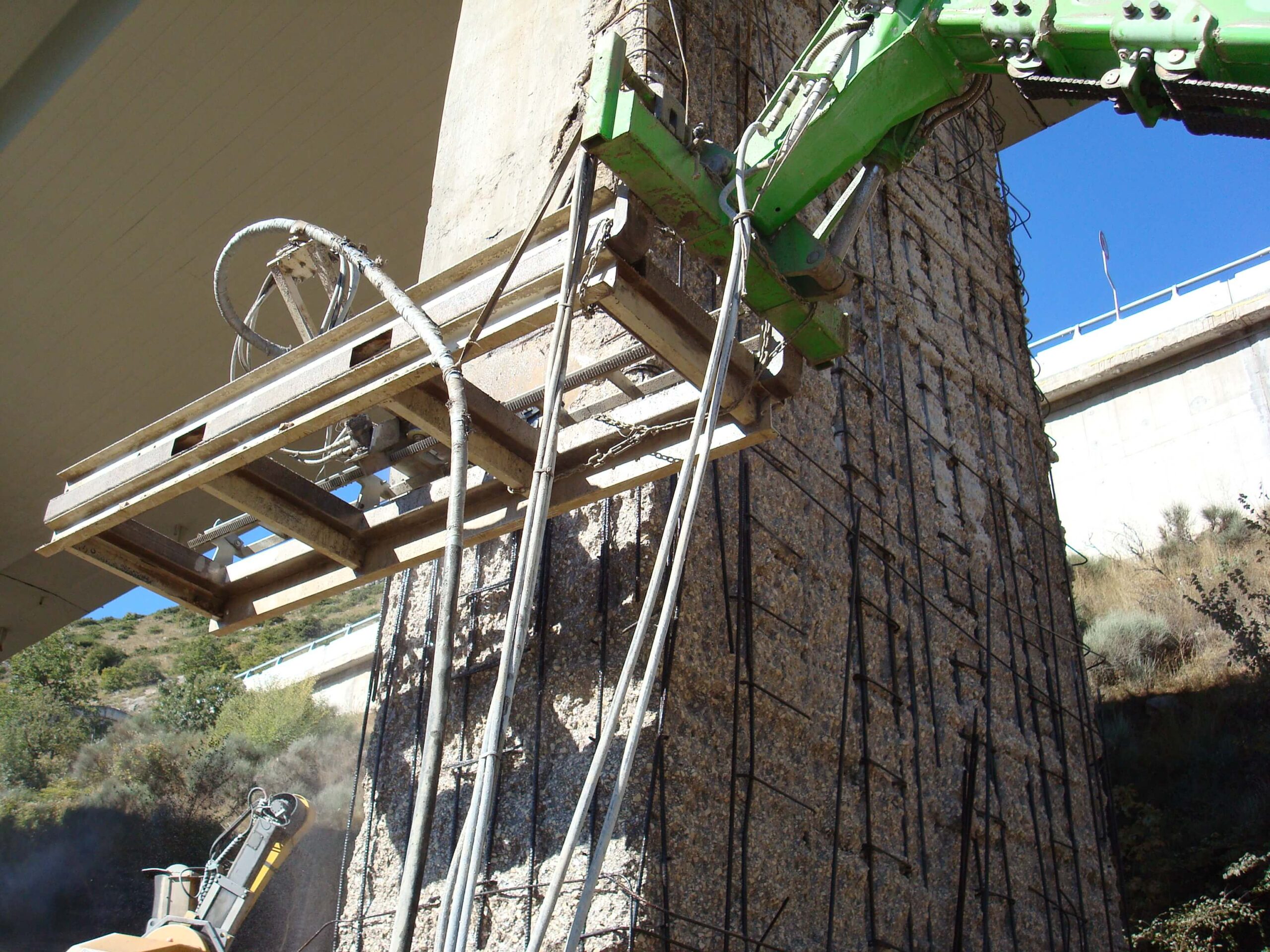 L’intervento ha riguardato l’idrodemolizione selettiva dei piloni del Viadotto S. Agapito, strutture in stato di forte degrado, con fioritura dei ferri d’armatura e calcestruzzo carbonatato in deterioramento. L’operazione è stata eseguita su pile alte da 6 fino a 15 metri, per un totale di circa 17.000 mq trattati.