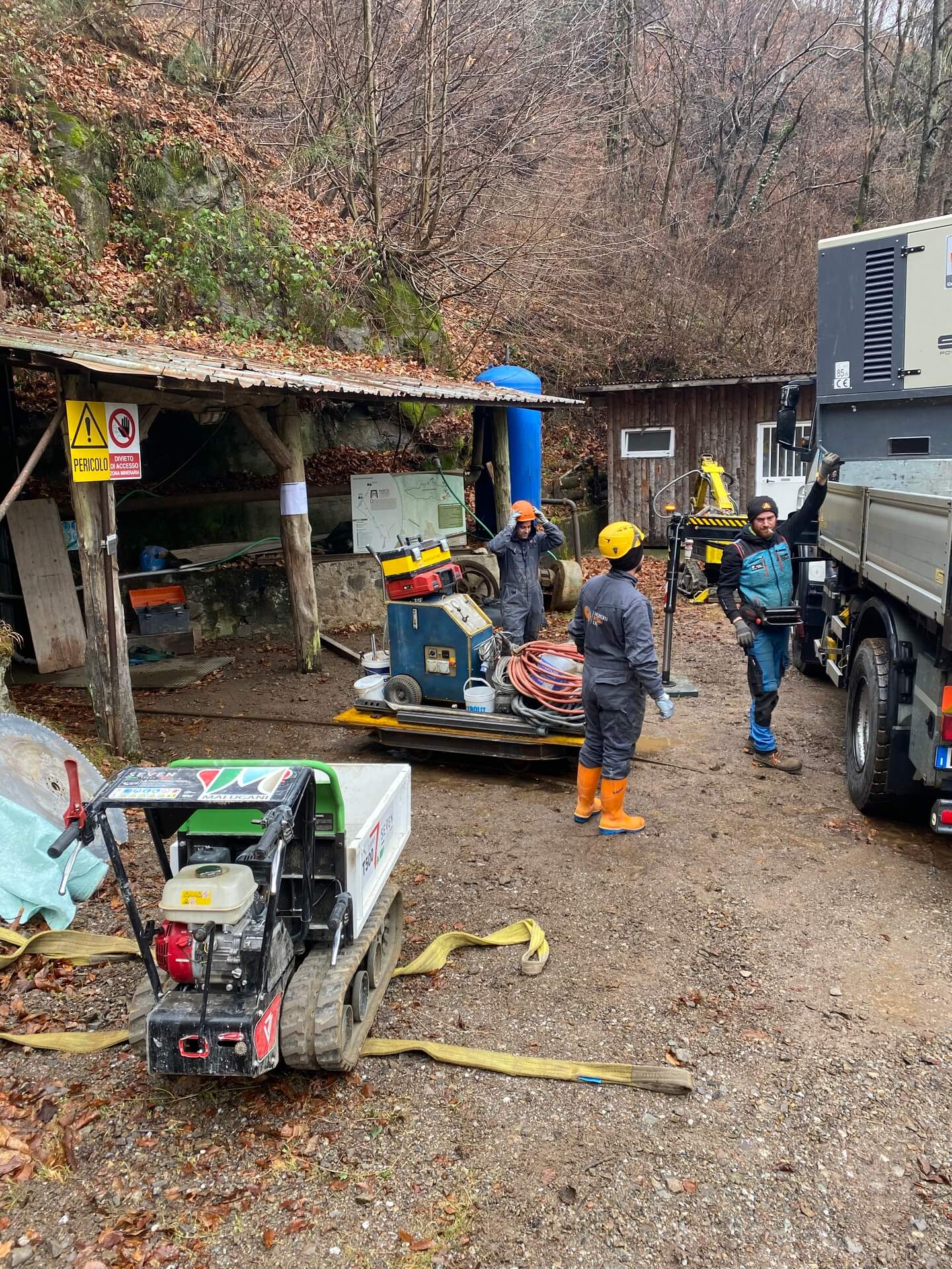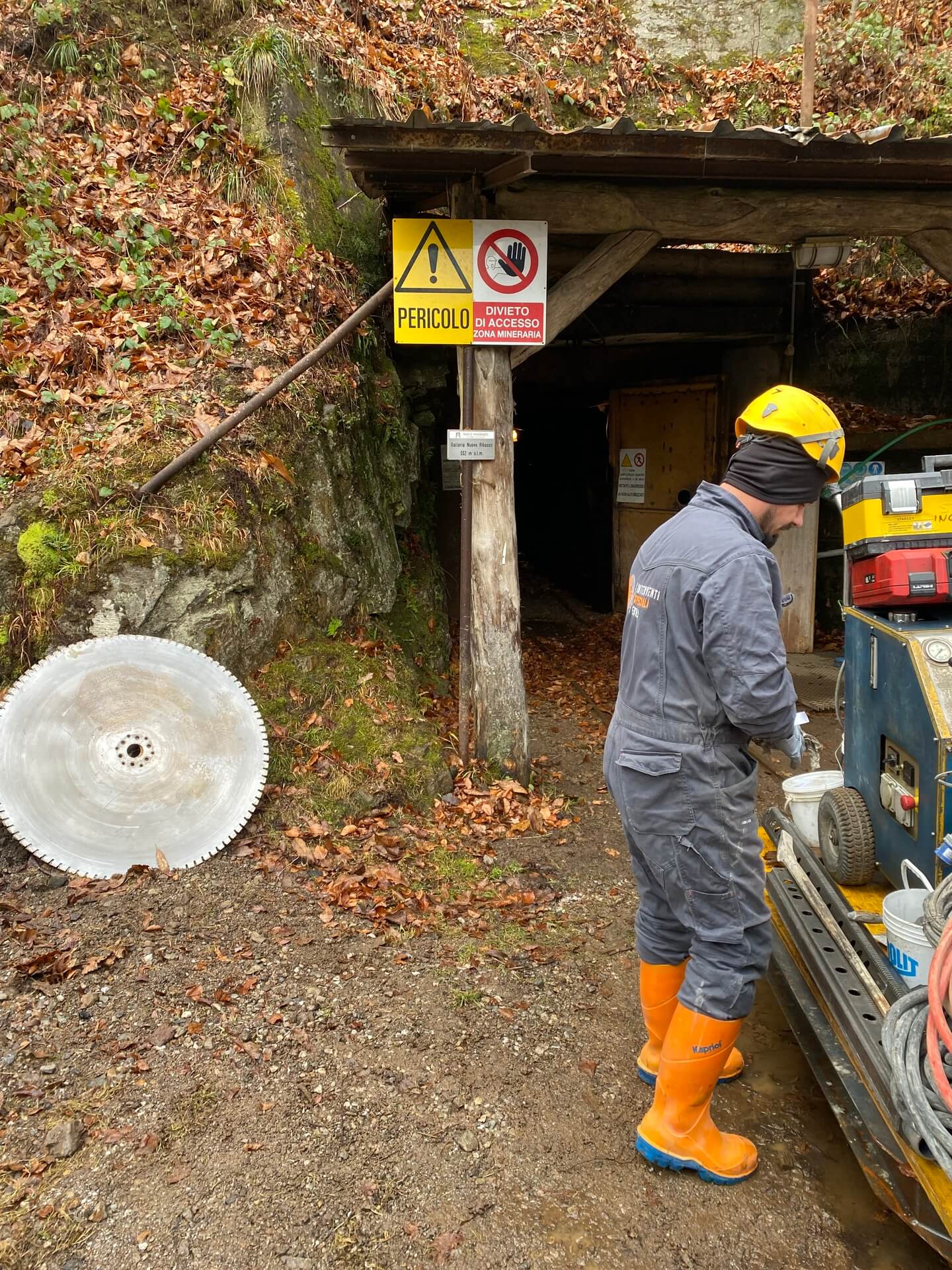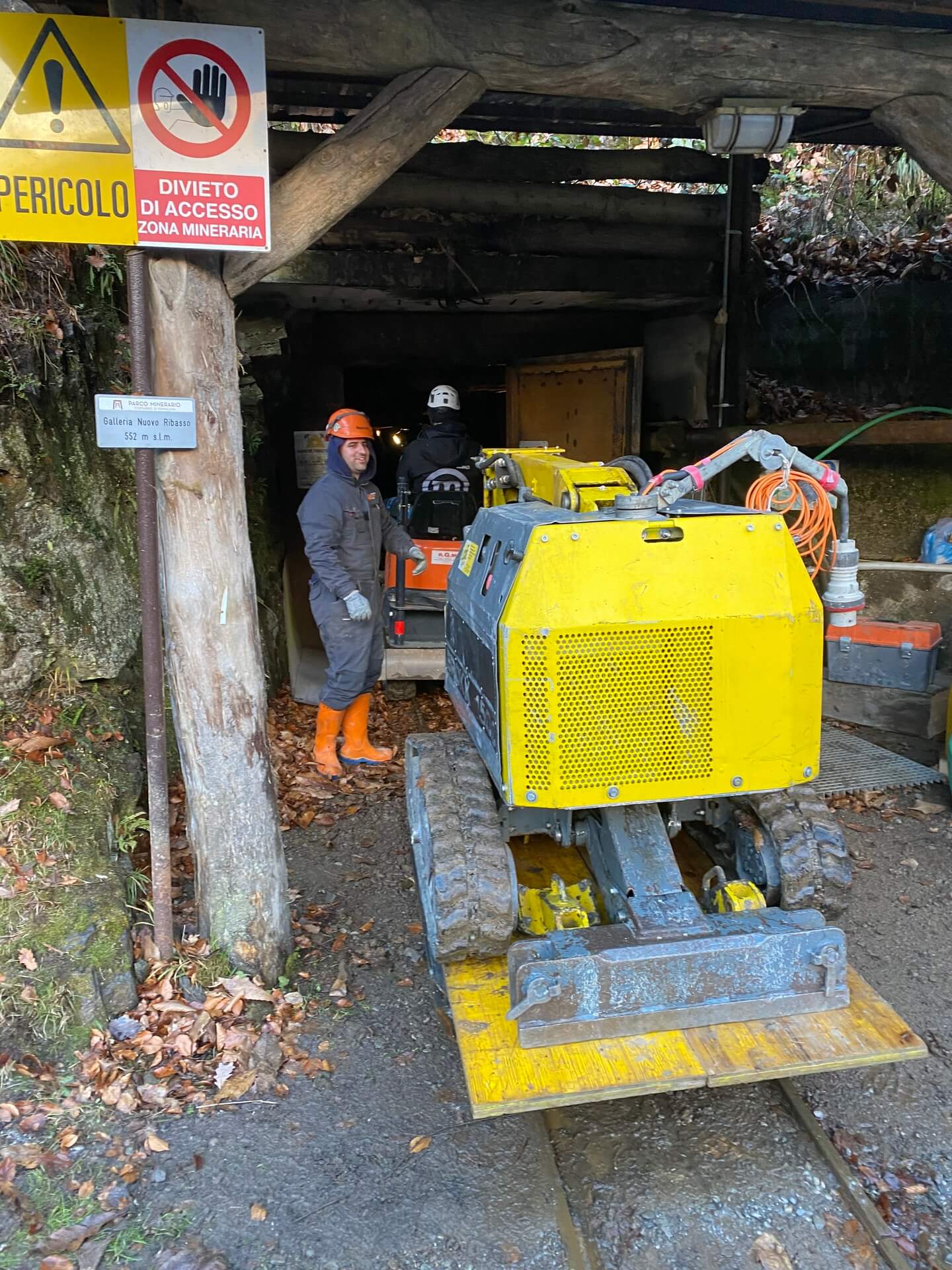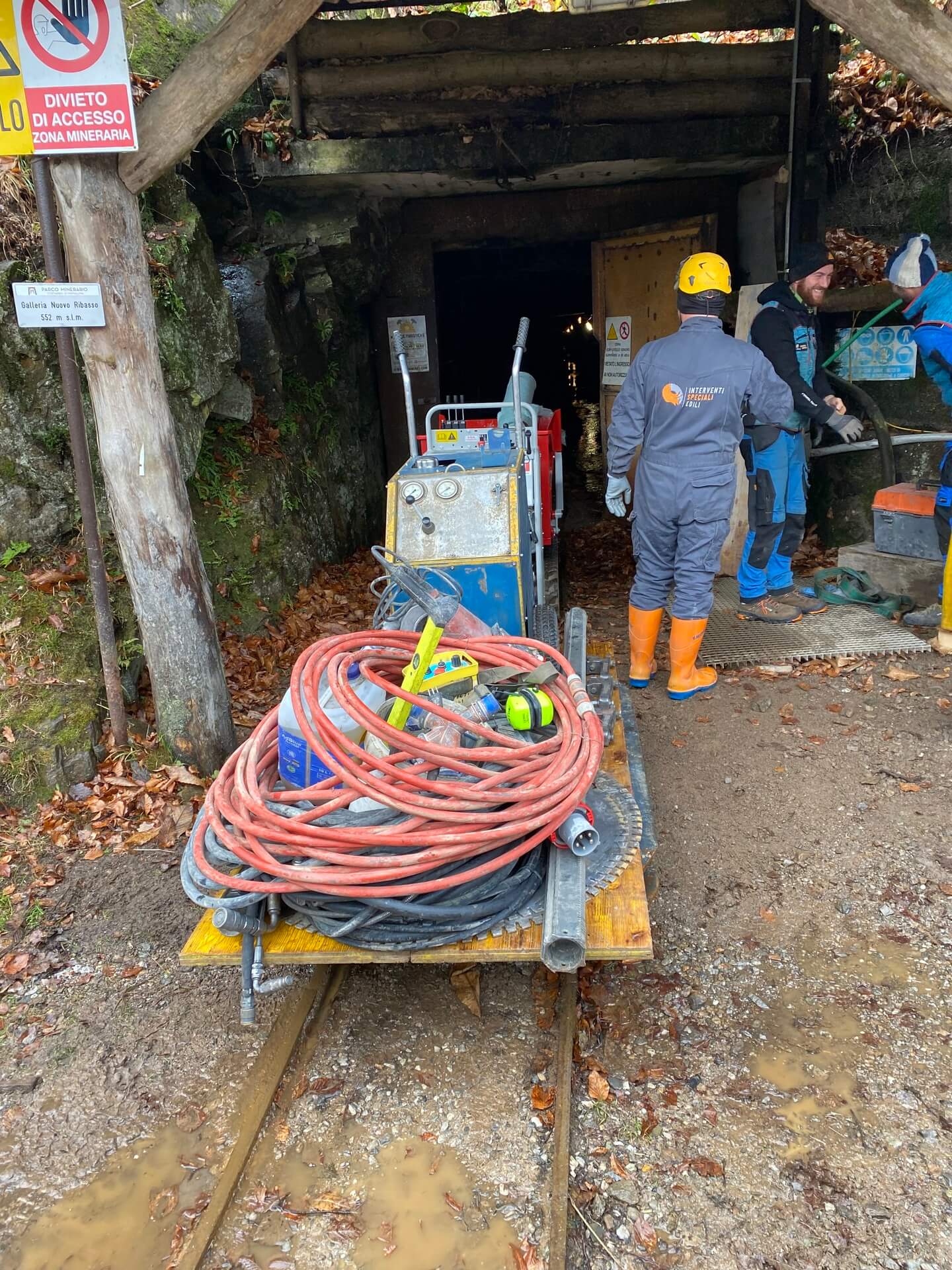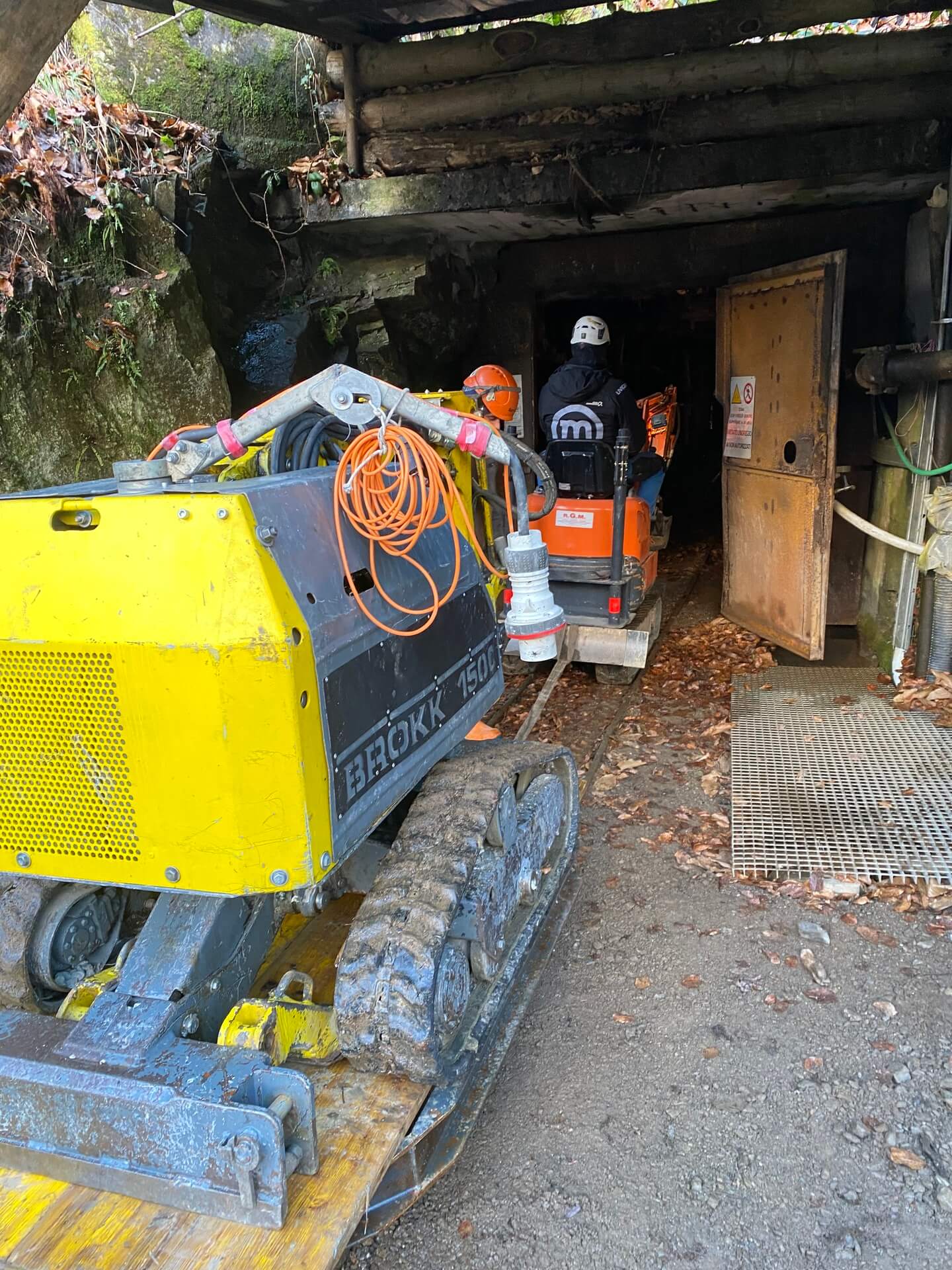 Una volta delimitate le porzioni da rimuovere, si è proceduto alla demolizione controllata: le masse rocciose sezionate sono state disgregate con l’ausilio del robot radiocomandato elettrico, che ha garantito precisione e sicurezza anche in condizioni di spazio limitato. Il materiale frantumato è stato quindi caricato su carrelli e rimosso dall’area di lavoro mediante carri da cava, per un volume complessivo di circa 40 m³ di roccia demolita.